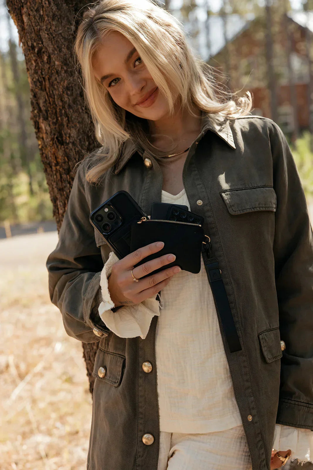 Built-in cardholder keeps your must-have cards—ID, credit, transit—right where you need them. -